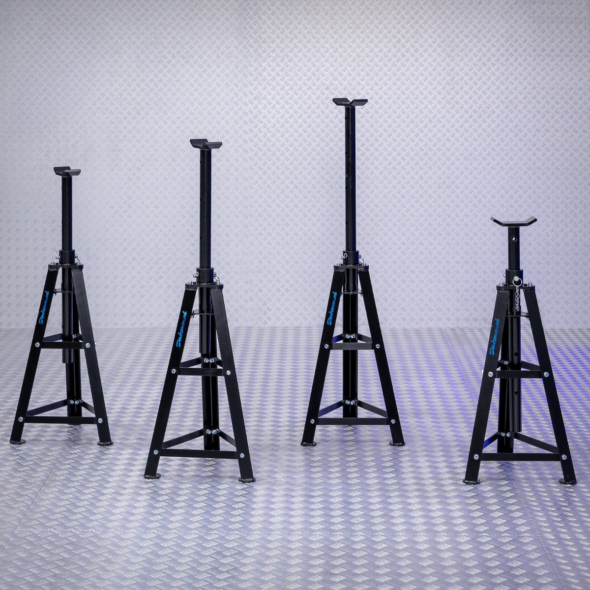 Dans chaque atelier ou garage, la sécurité est primordiale. Pour les mécaniciens et bricoleurs qui travaillent régulièrement sous des véhicules, un soutien fiable est indispensable. Avec ces quatre chandelles extra hautes, vous travaillez en toute sécurité sous des voitures, camping-cars ou utilitaires légers. Chaque chandelle dispose d’une capacité de charge de 6 tonnes, ce qui porte la capacité totale du set à 24 tonnes. Les solides bases à trois pieds soutiennent sans effort un pont élévateur ou un pont à ciseaux, vous permettant de travailler sereinement sous le véhicule.