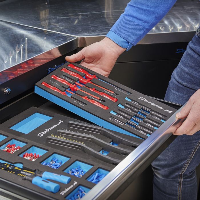 Tous les modules d'outils de Datona sont conditionnés pour nos servantes et unités de rangement à tiroirs.