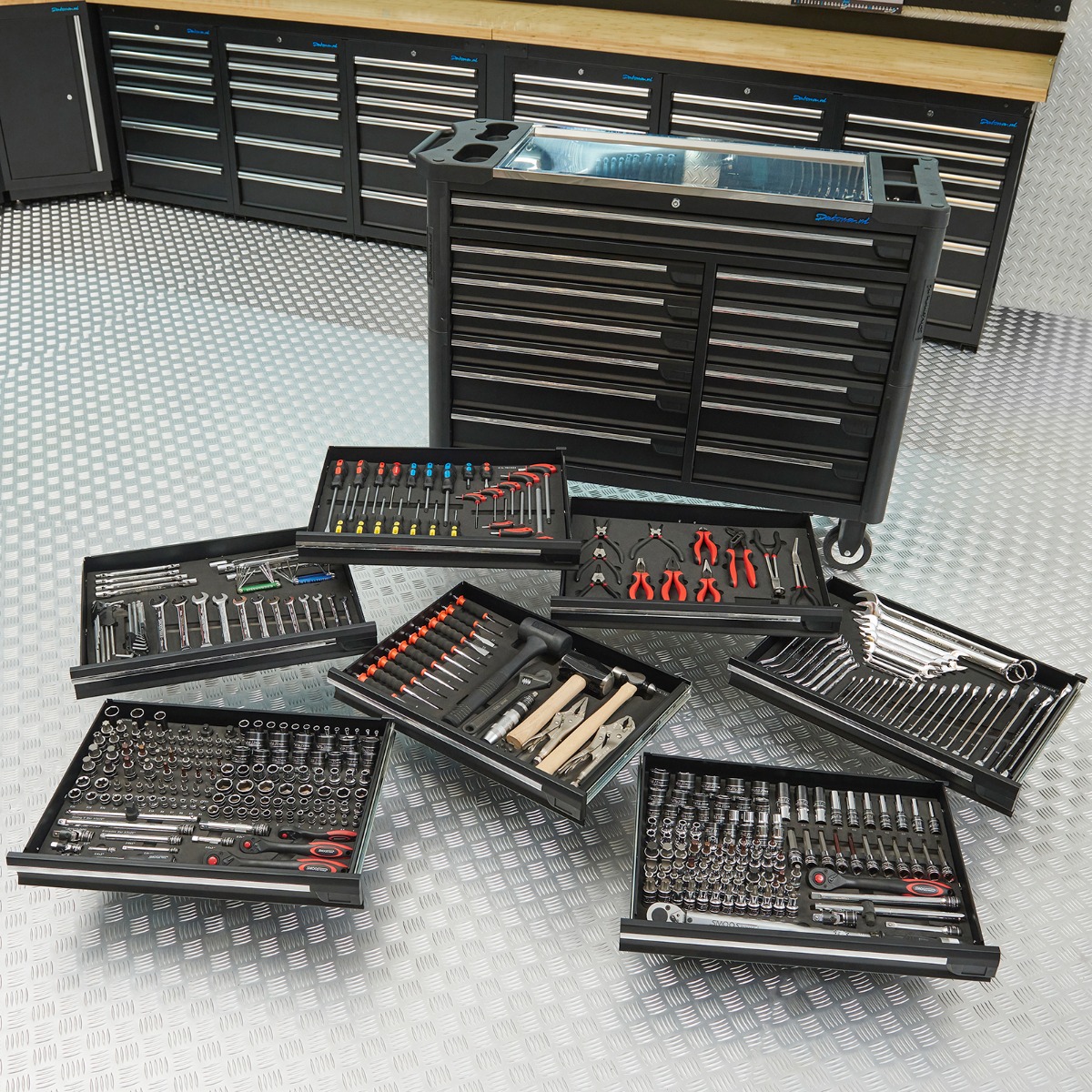 Une grande servante d’atelier et plusieurs jeux d’outils variés sont essentiels dans tout atelier ou garage. Ce pack réunit tout ce dont vous avez besoin pour démarrer en tant que bricoleur ou travailler au quotidien en professionnel. La servante Tech-Line robuste de Datona est livrée avec 7 jeux d’outils Smoos. Grâce aux modules en mousse, vous placez les sets en un instant dans 7 tiroirs de la servante ; il vous reste ensuite les autres tiroirs pour vos propres outils. Avec cette servante grand format, vous ne manquez jamais de rangement. Rendez votre espace de travail plus pro et plus efficace avec ce pack à prix avantageux.