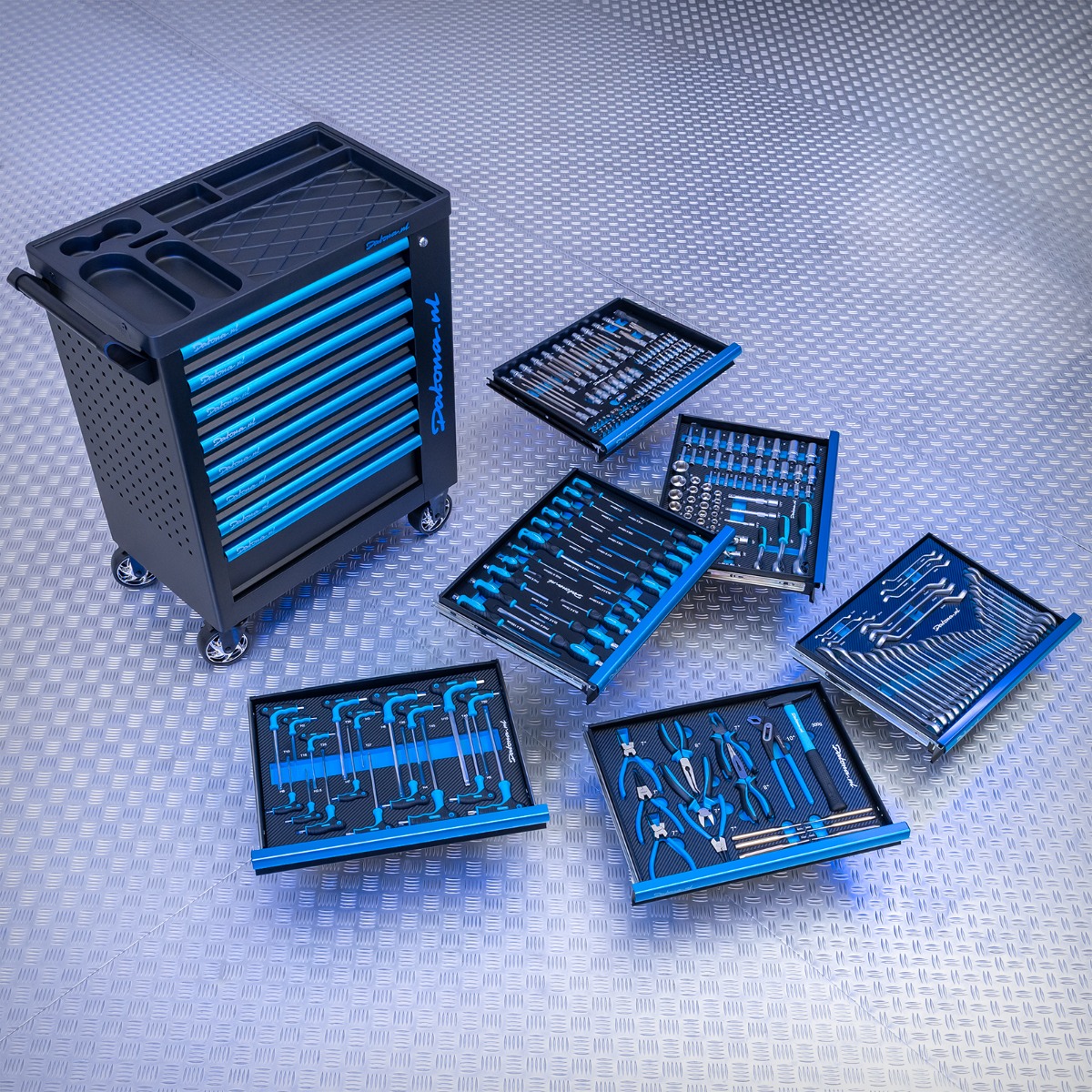 La servante est livrée avec un jeu d’outils très complet de 273 pièces en inserts mousse, qui équipe 6 tiroirs de la servante. Les inserts mousse protègent vos outils et les gardent clairement organisés.