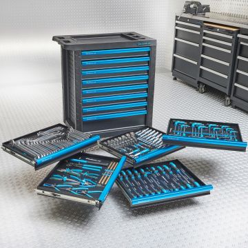 Les outils fournis avec les servantes ne sont pas simplement rangés en vrac dans les tiroirs. Chaque ensemble est accompagné d'un module souple pratique qui vous permet de garder une bonne visibilité sur vos outils. Nous avons déjà fait le tri pour vous. Grâce aux modules, vous pouvez également voir d'un coup d'œil s'il vous manque un outil particulier. Très pratique !